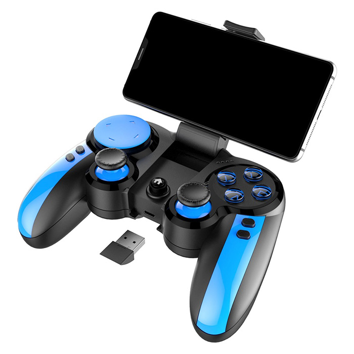 Контроллер работает беспроводным и проводным способом, имеет держатель для телефона и удобную форму для продолжительных игр. Дополнительные клавиши, двойная вибрация и энергоемкий аккумулятор сделают пользование геймпада более приятным.